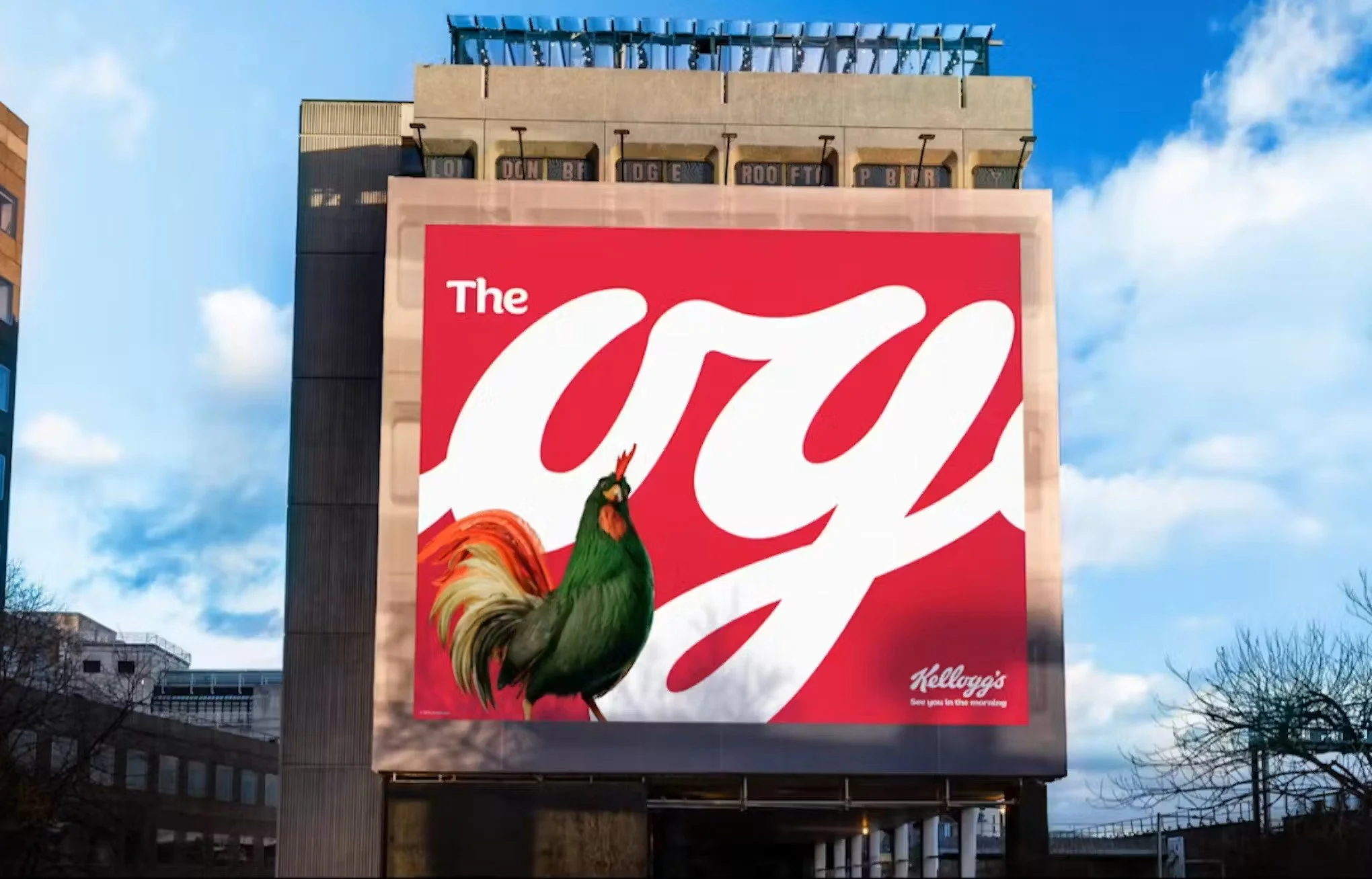Kellogg’s, meanwhile, launched a multi-million-pound campaign in January, bringing its iconic rooster mascot back into the spotlight. Set against the brand’s signature red, blue, and white palette, the outdoor posters prominently feature the tagline ‘The OG,’ which uses the same type as the Kellogg’s logo.